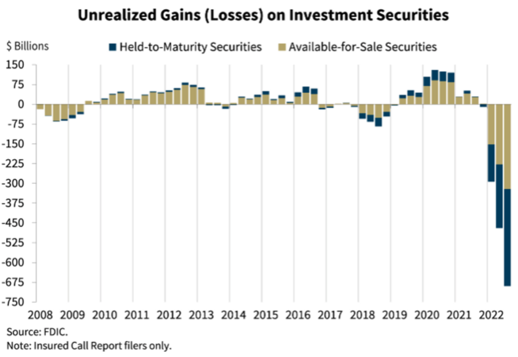 אנחנו רואים כאן את השפעות הריבית. הכסף לא זול כמו שהתרגלנו עד כה ותשואות האג"ח במשק עלו משמעותית מאז הריבית החלה לעלות. כעת הפוקוס עבר לתיקי האג"ח של שאר הבנקים האמריקאים (וגם הישראלים) שרבים מהם השקיעו פיקדונות באג"חים ארוכים מה שהכניס את הבנקים להפסדים "על הנייר" שבבוא העת גם הם כנראה יצטרכו להתמודד עם מצבים דומים לאלה.