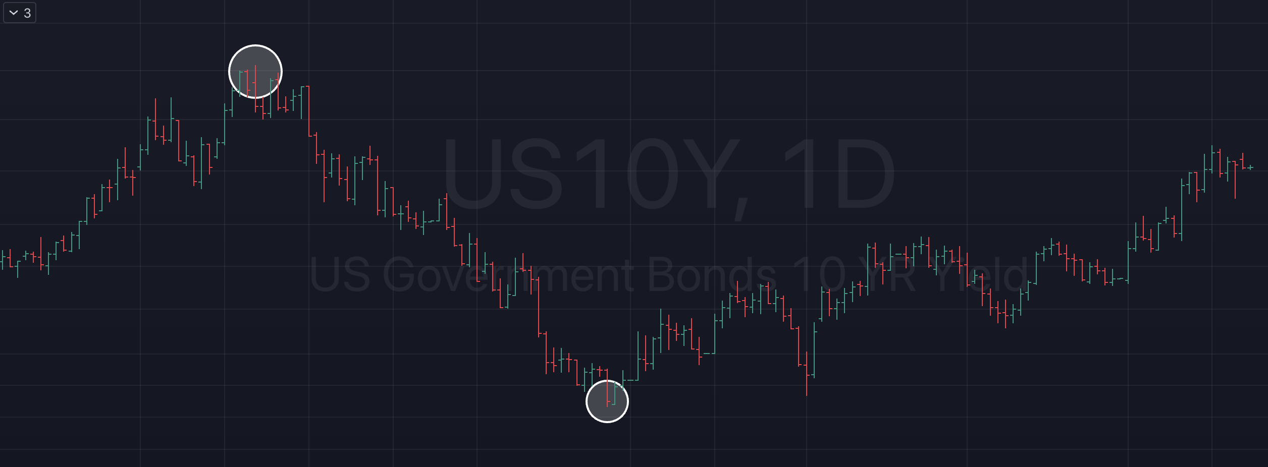 אגרות חוב, במיוחד הממשלתיות ואף הממשלתית ל 10 שנים בארה״ב, נתפסות כאפיק השקעה יציב בהשוואה למניות, מכיוון שהן מציעות תנודתיות נמוכה וסיכון נמוך בהשוואה למניות. תשואות האג״ח משקפות את רמת הבטחון של המשקיעים במדינה ובכלכלתה. תשואה גבוהה על אג"ח ארה״ב ממשלתי מעידה לעיתים על חוסר בטחון ועל צפי לעליית ריבית. בתקופות שבהן הריבית עולה, ערכן של אגרות החוב יורד, אך התשואה הנובעת מהן עולה (היחס בין מחיר האג״ח לתשואה הפוך, אפשר לקרוא את סדרת אגרות החוב) ולכן הן מושכות משקיעים שמחפשים יציבות וסיכון נמוך בהשקעותיהם. נכון לכתיבה שורות אלו, תשואת אג״ח ארה״ב ל 10 שנים נמצאת סביב ה 4.6%, האגרות הקצרות יותר נסחרות בתשואה של עד 5.5%. בתקופה של ריביות עולות, משקיעים מוכרים את אגרות החוב ויוצאים מנקודת הנחה שהריבית תמשיך לעלות, הם חוזרים לקנות שוב את אגרות החוב כאשר הם מניחים שהריבית תשאר במקומה או תתחיל לרדת, זאת במטרה ״לקבע״ תשואה גבוהה לטווח רחוק תוך ניסיון למקסם את התשואה הפוטנציאלית שהם יוכלו לקבל. ניתן לראות בגרף שבאוקטובר 2022 (העיגול הראשון משמאל לימין) תשואת אג״ח ארה״ב ל 10 שנים הגיעה לשיא של 5%, לאחר מכן ירדה עד 3.7% בדצמבר 2023 שבה קבעה שפל תקופתי ומשם חזרה לעלות. כרגע נסחרת סביב 4.6%. גרף מלא.